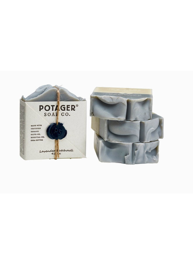 Experience the warm and exotic earthy notes of Patchouli combined seamlessly with Lavender in Potager's perfect-for-everyone bar soap.