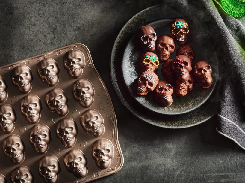 - Cakeware: Surprise guests with a “cakelets” shaped like skulls with tea or dessert.