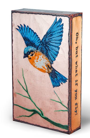 Houston Llew Spiritiles are meant to reflect a piece of the human experience, eliciting raw emotion and bringing to mind the people we love. These enameled blocks can be collected and displayed as a montage of moments, like those that accumulate throughout life. These blocks are made using vitreous enamel, the art of heat fusing glass to metal, and every individual block is unique. Each block features a unique design on the front and a famous quote on both of its enameled sides. Learn more about Houston Llew’s process in ourblog post.