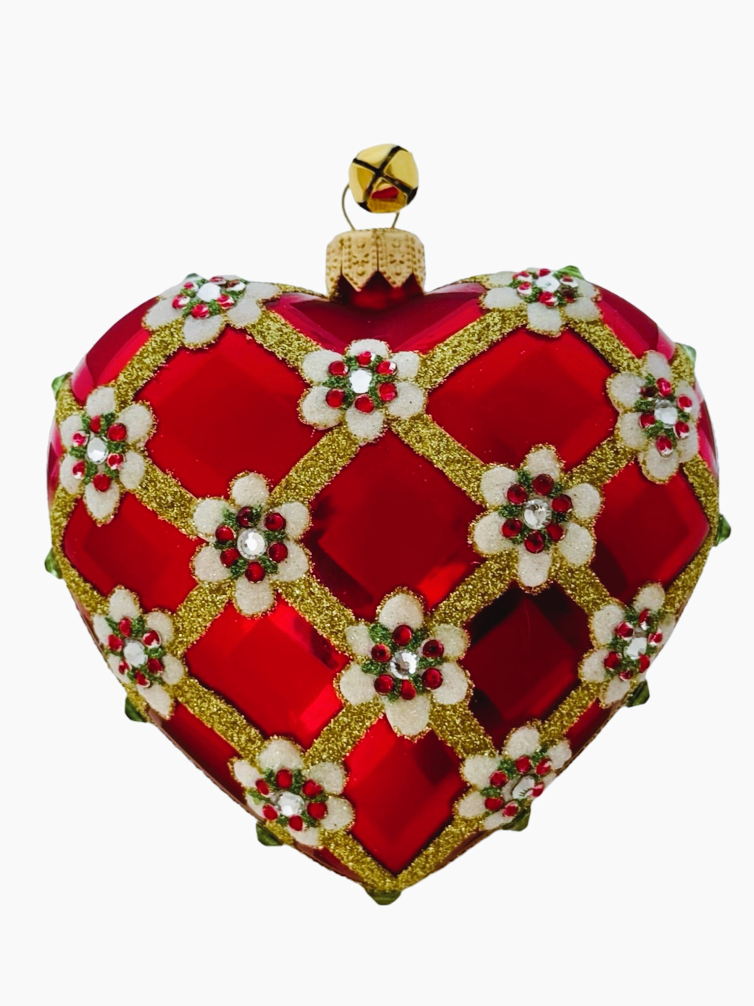 - Red Holiday Heart Ornament Trimmed with Czech Crystals