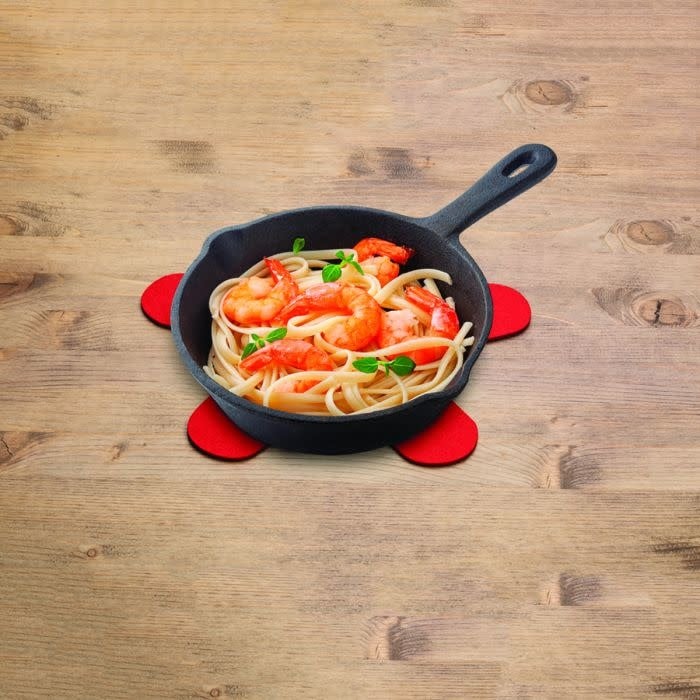 - Safely stack steel cookware, non-stick pans, decorative bowls, dinnerware, and platters or protect countertops and tables when used as trivets