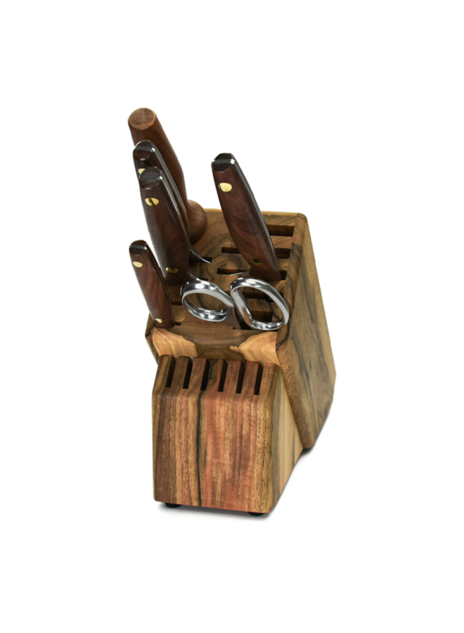 - 16-Slot Block in all natural walnut wood – Block has 6 extra slots for steak knives, and 4 extra slots for other knives you may have, in case you want to add these later.