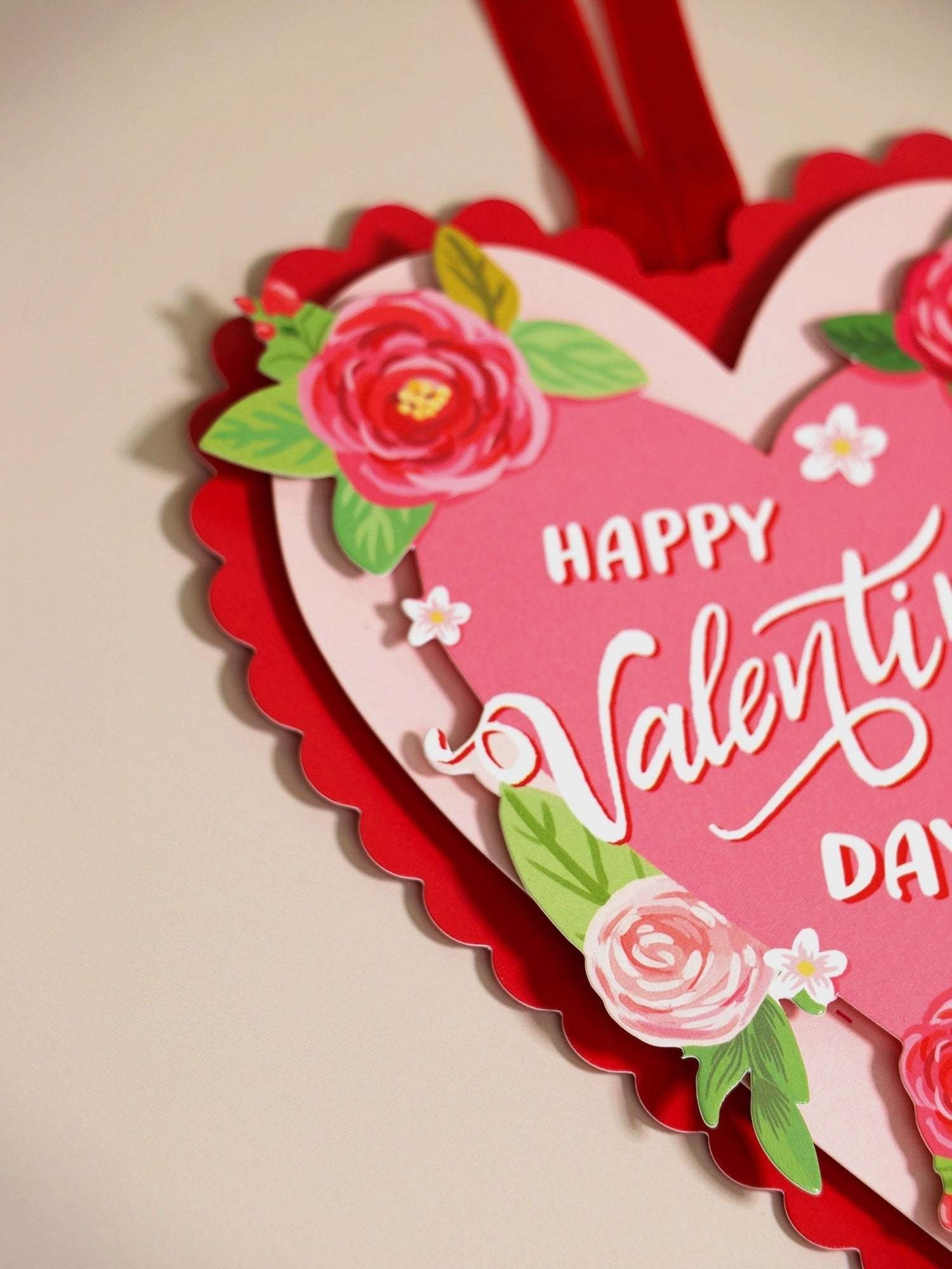 Send something sweet! This 3D greeting card is framed with florals and hearts, all tied together with a charming velvet ribbon. This delightful design doubles as a keepsake and is blank inside, ready for your heartfelt message to the one you adore.