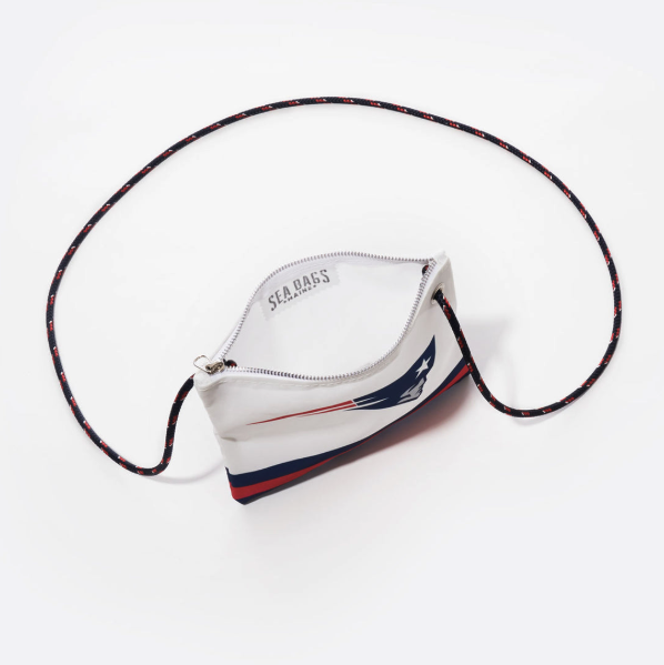 Perfect for stadium events, travel, or daily errands, it features a compact profile that keeps essentials close without added bulk. Durable, machine washable, and sustainably made, this Patriots crossbody is built for life on the go.