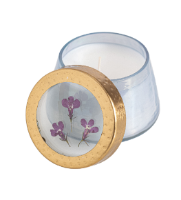 Pressed floral candles feature dreamy floral tableaus displayed between panes of glass. Hand poured with a coconut wax blend. Lovingly handmade in Colorado.